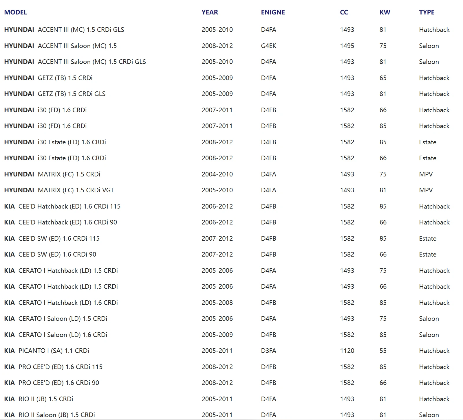 | HYUNDAI GETZ (TB) 1.5 CRDi |